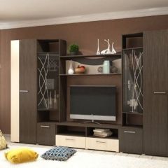 В гостиной "Гамма" строгость линий разбавляется симметричным витражным рисунком, который создает настроение и придает всей композиции элегантную индивидуальность.
