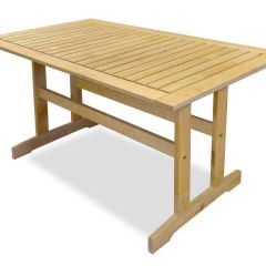 При длине 1,2 м он вполне удобно разместит 6 человек. Два продольных распора не позволяют столу раскачиваться. Изделие неокрашенное.