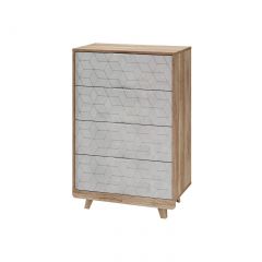 Особый шарм комодам «Мегаполис» придают трендовые цветовые решения фасадов, которые идеально вписываются практически в любой стиль. Оригинальная фрезеровка и эксклюзивная фотопечать выглядит очень эффектно и эксклюзивно. Пыли и грязи на таких поверхностях совершенно не видно, а это огромный плюс для домохозяек! Комод (КМ-02) состоит из четырёх выдвижных ящиков на шариковых направляющих для хранения одежды, пастельного белья и других хозяйственных аксессуаров. Цветовая палитра фасадов комодов впервые разбавлена фасадами с качественной фотопечатью.