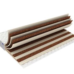 Матрас, для любителей, всё же, матрасов пожёстче. Одна сторона заканчивается прочным упругим кокосом, высотой 3 см. Другая латексом 3 см. Это позволяет, выбирать, степень жёсткости, в которой нуждается ваша спина, т.к. латекс смягчает кокосовые прослойки. Все материалы натуральные, гипоаллергенные, гигиеничные, долговечные, обладают высоким ортопедическим и анатомическим эффектом.