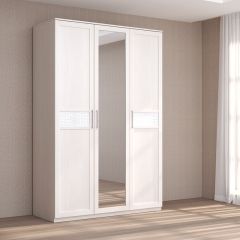 Кэт-4 Шкаф 3-х ств (1 зерк) (МДФ Бодега белая/Экокожа Caiman белый)